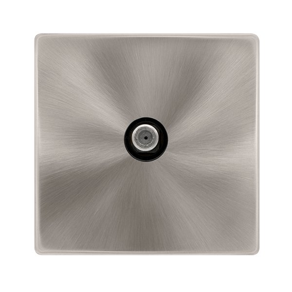 Click Definity Complete Non-Isolated Single Satellite Outlet Brushed Steel Cover Plate Black Insert