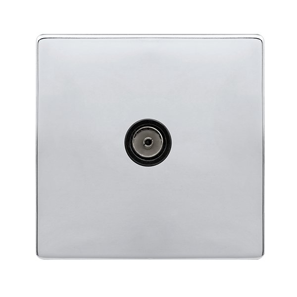 Click Definity Complete Single Non-Isolated Coaxial Outlet Polished Chrome Cover Plate Black Insert