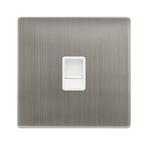 Click Definity Complete Single Rj11 (Irish/Us) Outlet Stainless Steel Cover Plate Polar White Insert