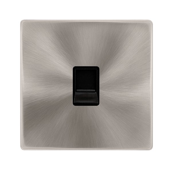 Click Definity Complete Single Telephone Secondary Outlet Brushed Steel Cover Plate Black Insert