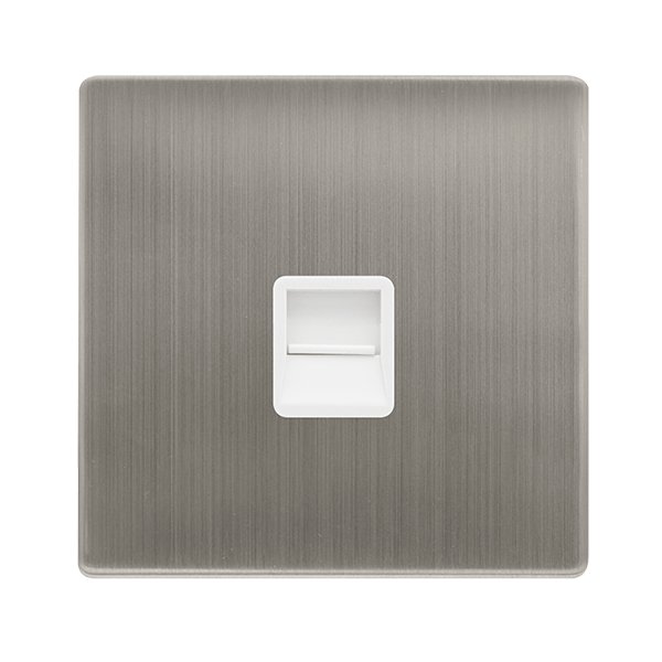 Click Definity Complete Single Telephone Secondary Outlet Stainless Steel Cover Plate Polar White Insert
