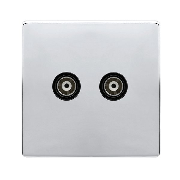 Click Definity Complete Twin Isolated Coaxial Outlet Polished Chrome Cover Plate Black Insert