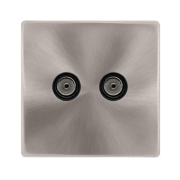 Click Definity Complete Twin Non-Isolated Coaxial Outlet Brushed Steel Cover Plate Black Insert