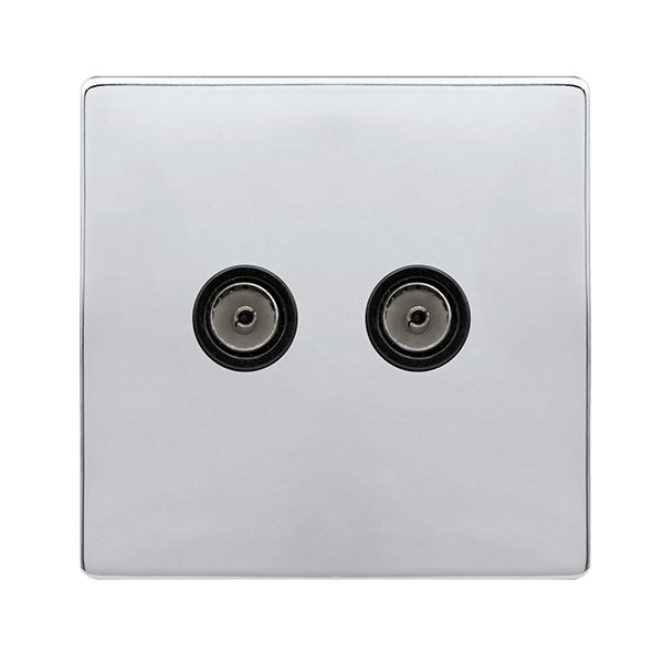 Click Definity Complete Twin Non-Isolated Coaxial Outlet Polished Chrome Cover Plate Black Insert