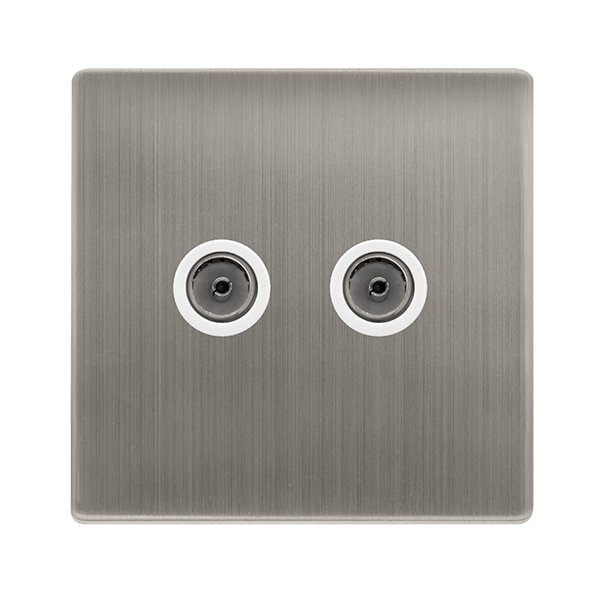 Click Definity Complete Twin Non-Isolated Coaxial Outlet Stainless Steel Cover Plate Polar White Insert