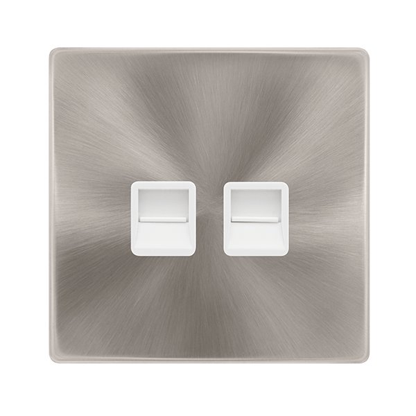 Click Definity Complete Twin Telephone Master Outlet Brushed Steel Cover Plate Polar White Insert