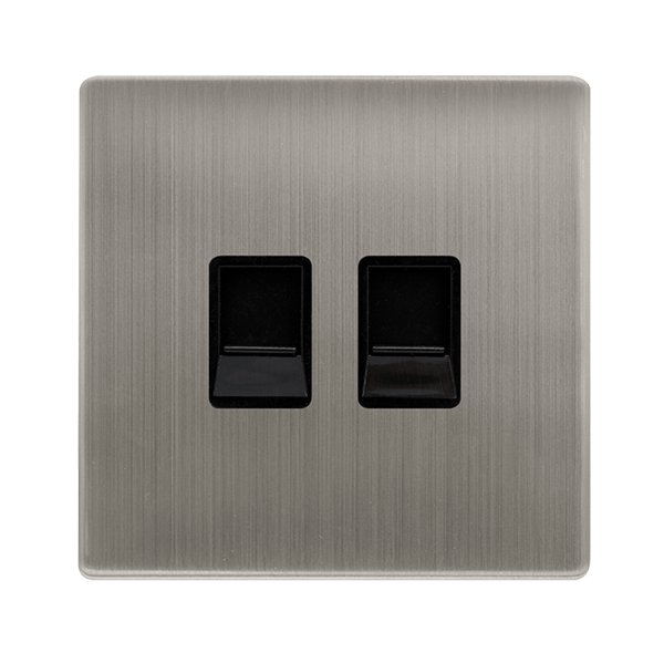 Click Definity Complete Twin Telephone Master Outlet Stainless Steel Cover Plate Black Insert