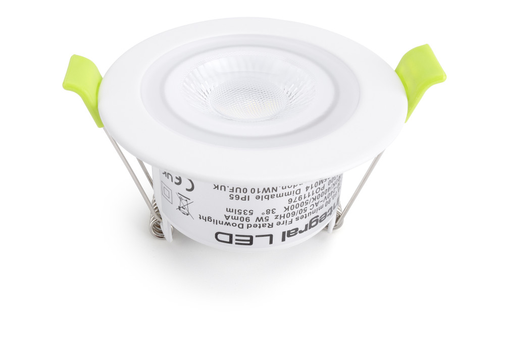 Integral Ecoguard Fire Rated Downlight 65Mm Cutout IP65 600Lm 5W 3000/4000/5000K 38 Beam Dimmable 120Lm/W White