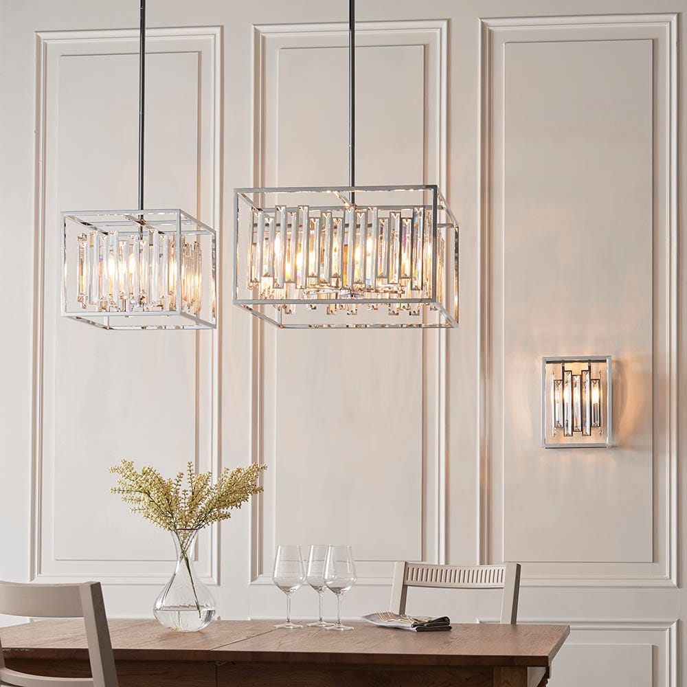 A striking mix of modern and classic styling, high quality bevelled glass crystals are effortlessly framed within modern polished chrome metalwork, the perfect touch of grand opulent style and on-trend design. Fully height adjustable for a close to the ceiling flush or an impressive long drop chandelier.