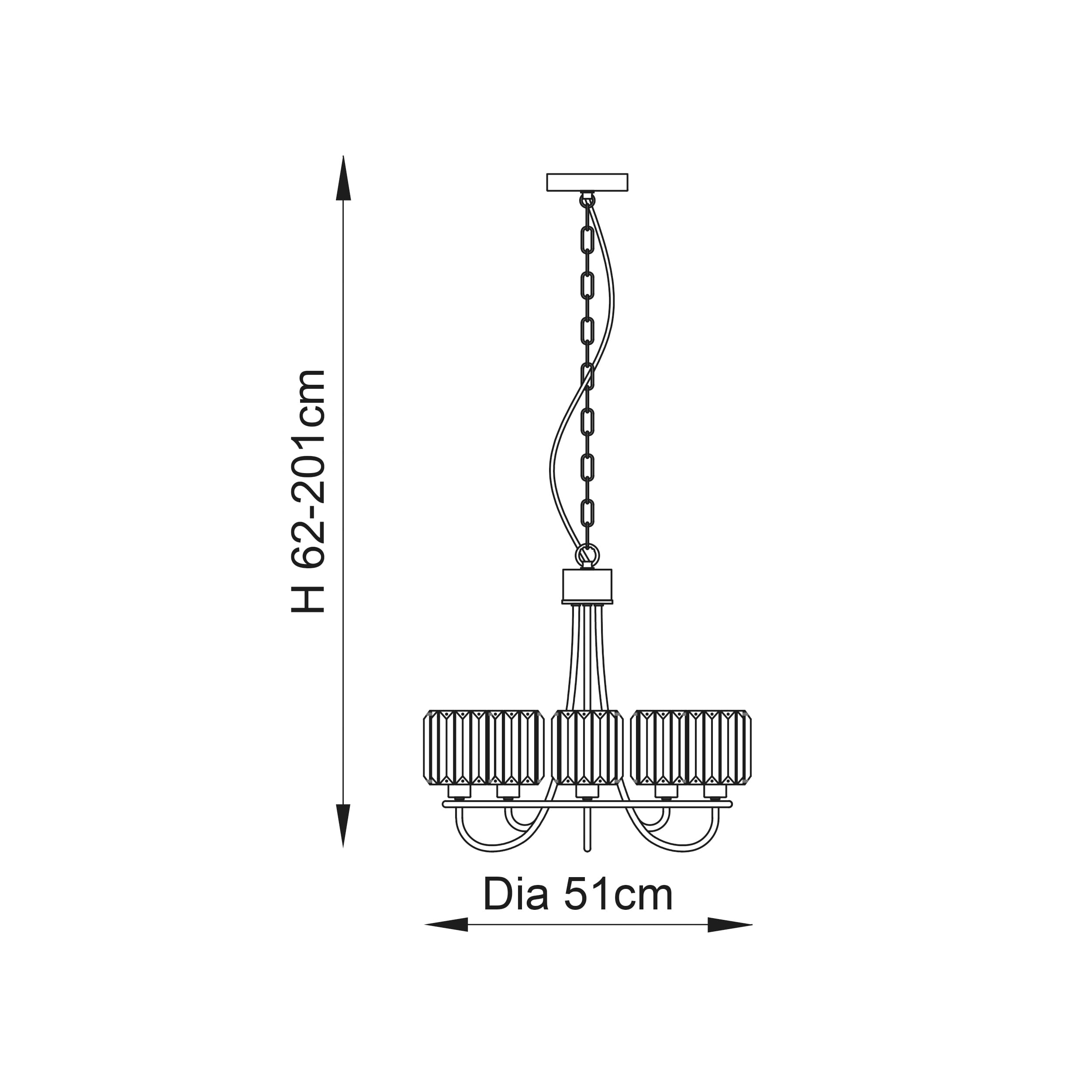 Sophisticated 5 light pendant with decorative clear cut faceted glass shades that beautifully disperse the light. Elegant arms in an antique brass plate finish; perfect for hanging in any living space. Other matching items available.