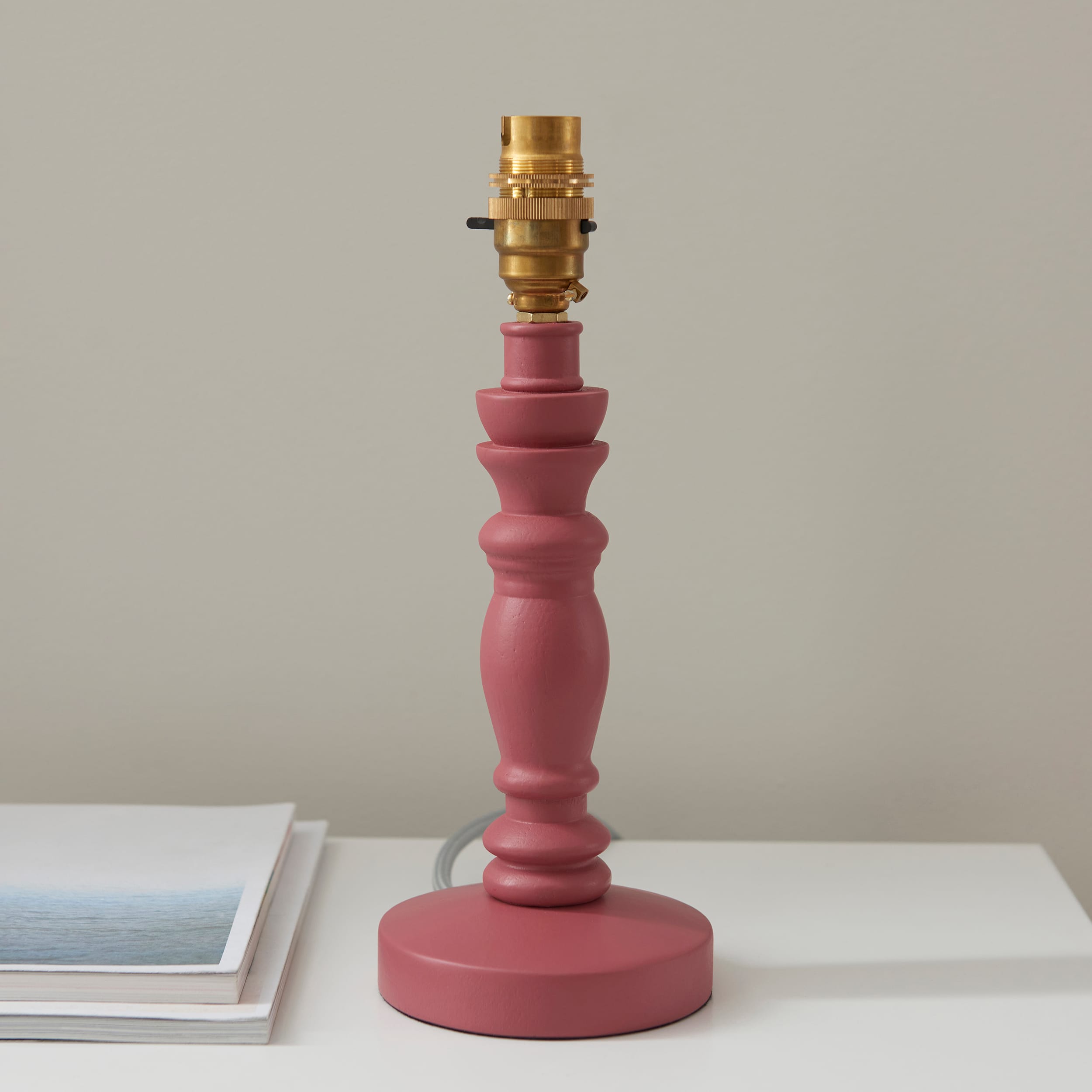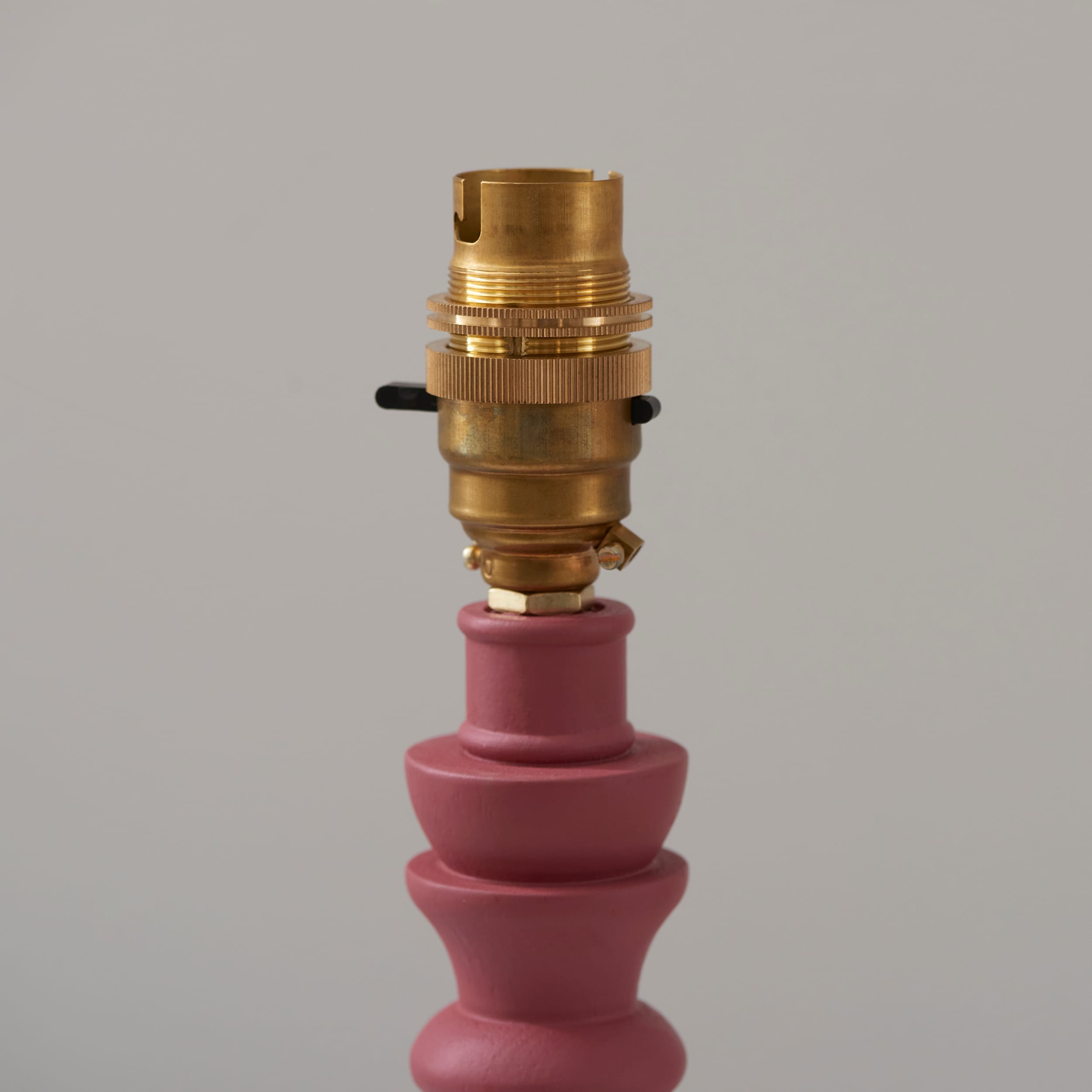 Beautiful wooden turned spindle light, painted satin pink clay.Perfect for classic interiors, featuring a brass B22 switched lamp holder and grey braided fabric flex. Pair with one of our 16cm or 20cm decorative fabric shades for a unique classic look.