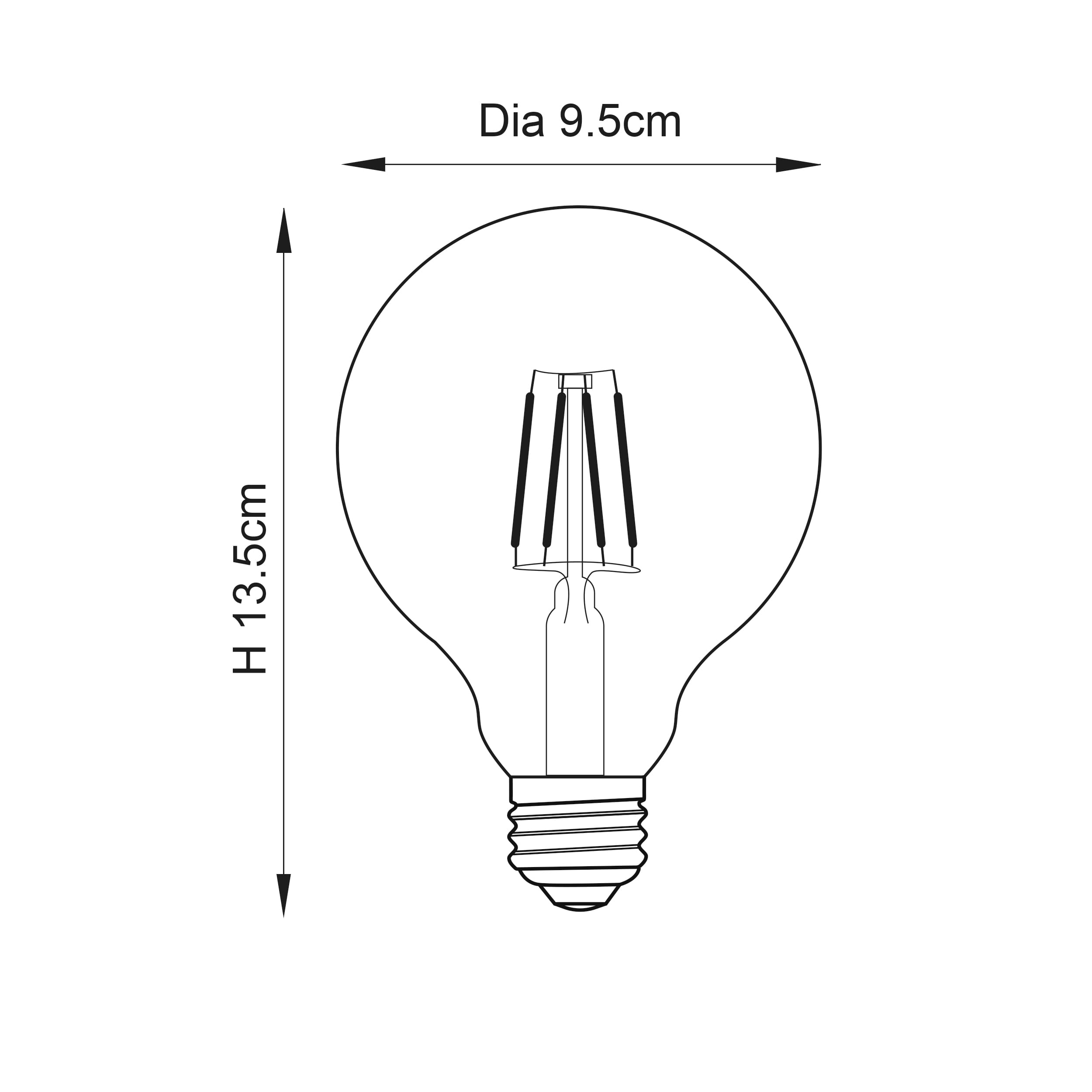 Filament lamps are the latest in LED technology. Designed to look like the original incandescent lamps, offering all the advantages of LED, such as low running costs, these are the ideal lamp replacement for all decorative light fittings. This is a dimmable 6W LED lamp that has a 2700K colour temperature.