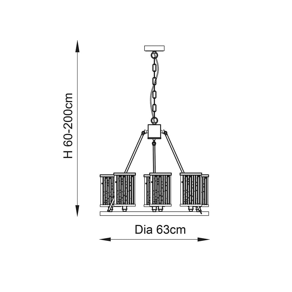 A unique classic styled chandelier in bright nickel plated finish. Inspired by hurricane lamps, the clear ribbed glass shades with bubble details create a perfect diffused light when lit by filament LED lamps. Each shade rests subtly on the rectangular section hoop and is suspended by three fixed arms with a height adjustable chain & clear flex set.