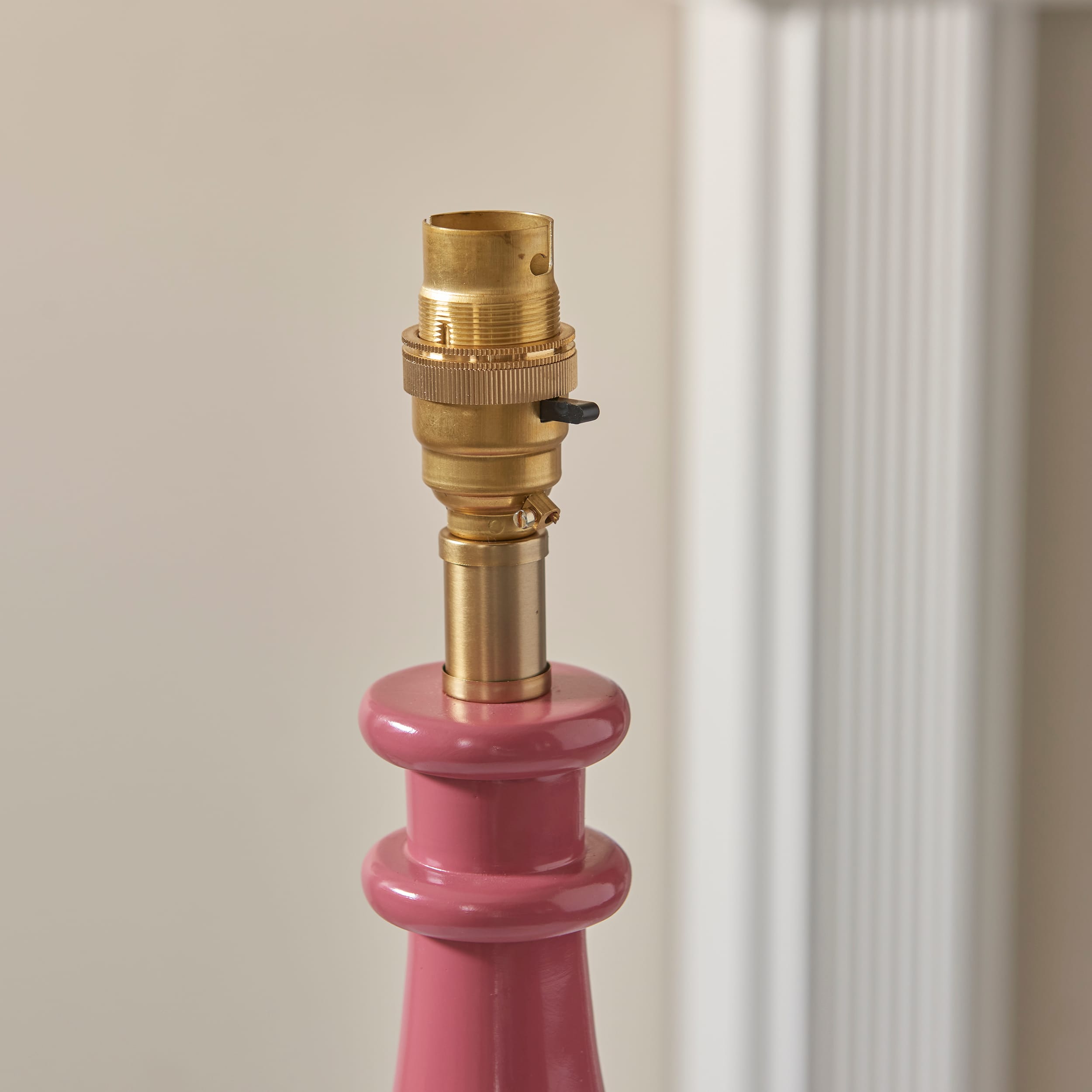 Getting it’s inspiration from turned classic staircase spindles, this table light is finished in high gloss pink clay colour resin, with switched B22 brass lamp holder and pale braided fabric flex.Choose from one of our 25cm or 30cm decorative fabric shades to complete this timeless country luxe look.