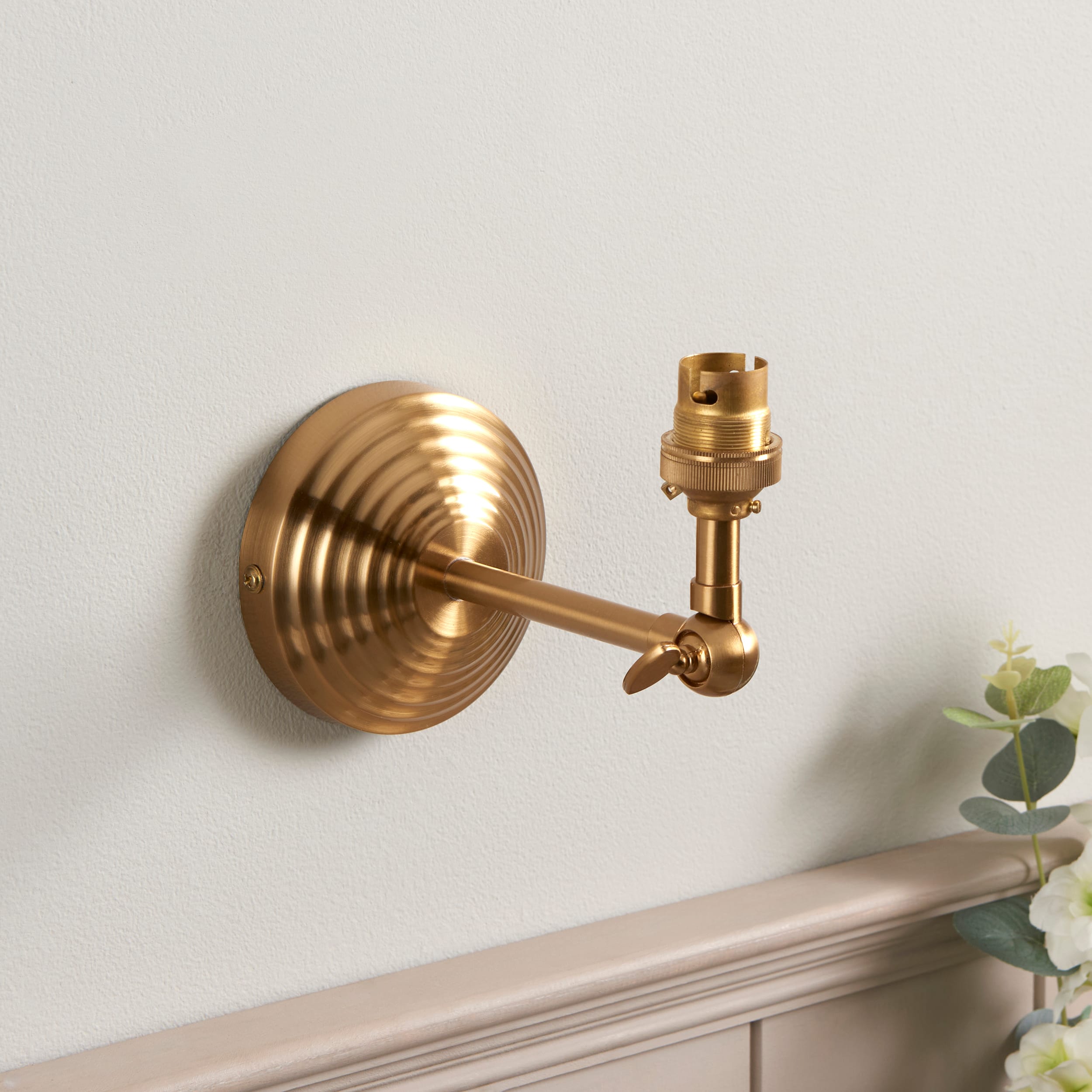 A multiple stepped wall back with simple linear arm featuring an adjustable knuckle to angle the wall light for that authentic classic look. Perfect for bedsides, hallways and lounge spaces. Finished in brushed aged brass, complete the look with one of our 16cm decorative fabric shades.