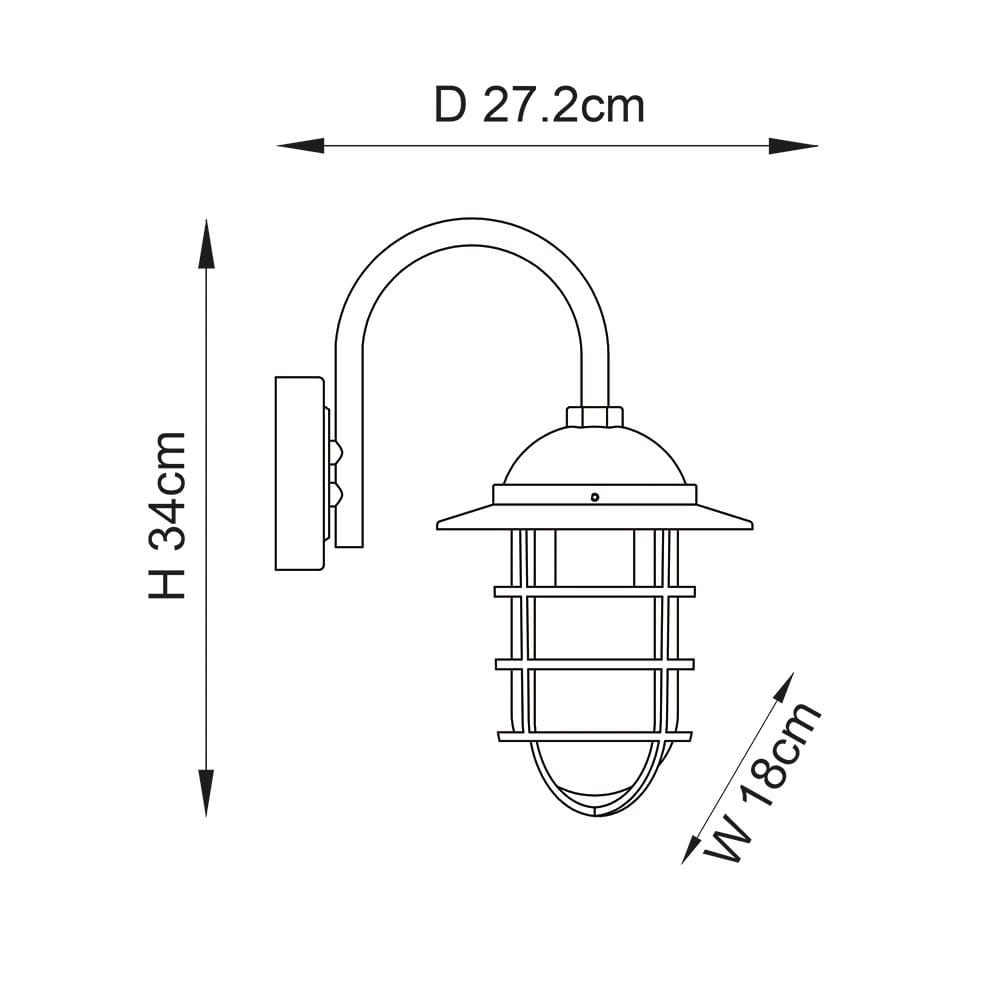 Modern classic exterior light with caged metal work over a clear glass shade; perfect for use with E27 LED filament lamps. Corrosive resistant and IP44 rated perfect for enduring the UK weather.