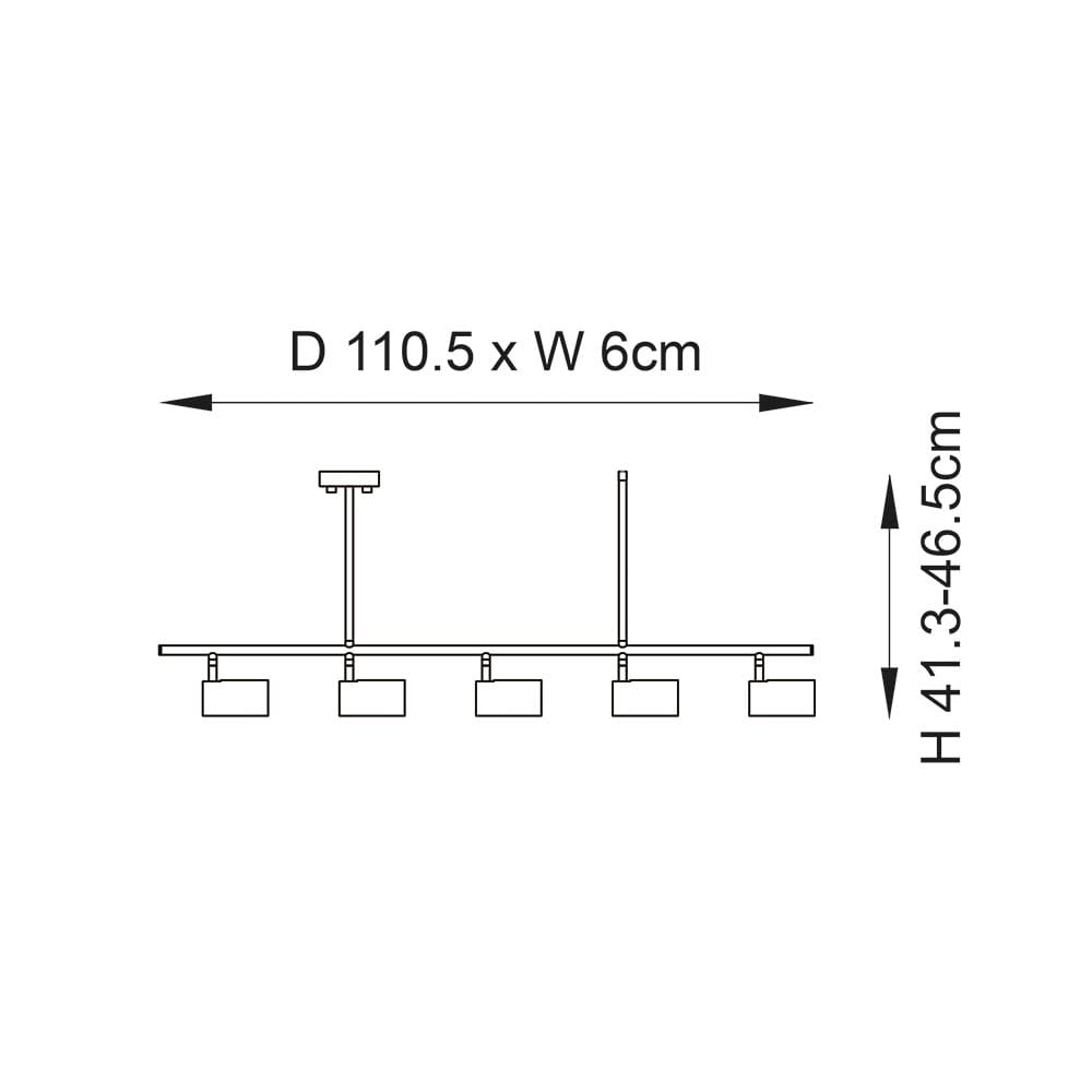 Five light spotlight house on bold matt black frame, creating a strong clean silhouette and directional lighting.