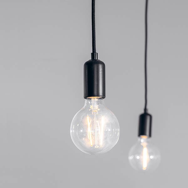 Create that cool urban look with this industrial six light pendant, simple in construction with matt black painted lamp holders suspended from height adjustable black fabric flex. Select the position of each lamp, able to reach over a large area of your interior for perfect illumination.