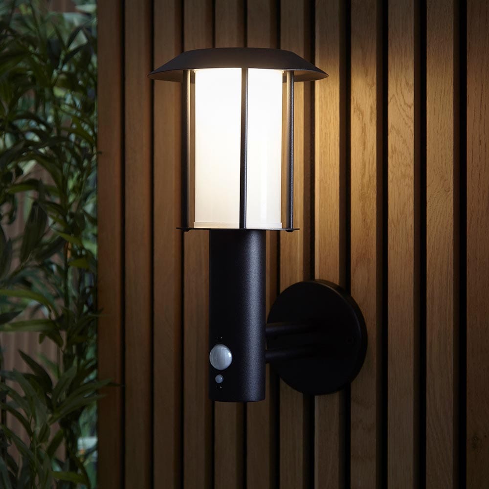 Save on energy bills without compromising on style. Modern matt black solar wall light with PIR sensor; perfect for porches and alley ways – 110 degrees detection angle and 8m maximum range.Three intelligent modes to choose from MODE ONE (CONSTANT) Automatically illuminates at dusk with low light.MODE TWO (BOOST) Automatically illuminates at dusk with low light and gets brighter when motion is detected.MODE THREE (SECURITY) Only illuminates when motion is detected with bright light for 25 seconds.IP44 rated for safe outdoor use. Matching family items also available.