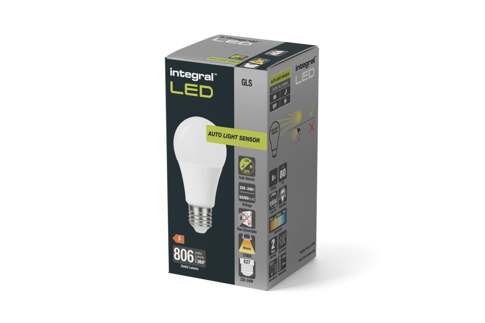 Integral Gls Bulb With Dusk To Dawn Dual Sensor E27 806Lm 8W 2700K Non-Dimm 240 Beam Frosted