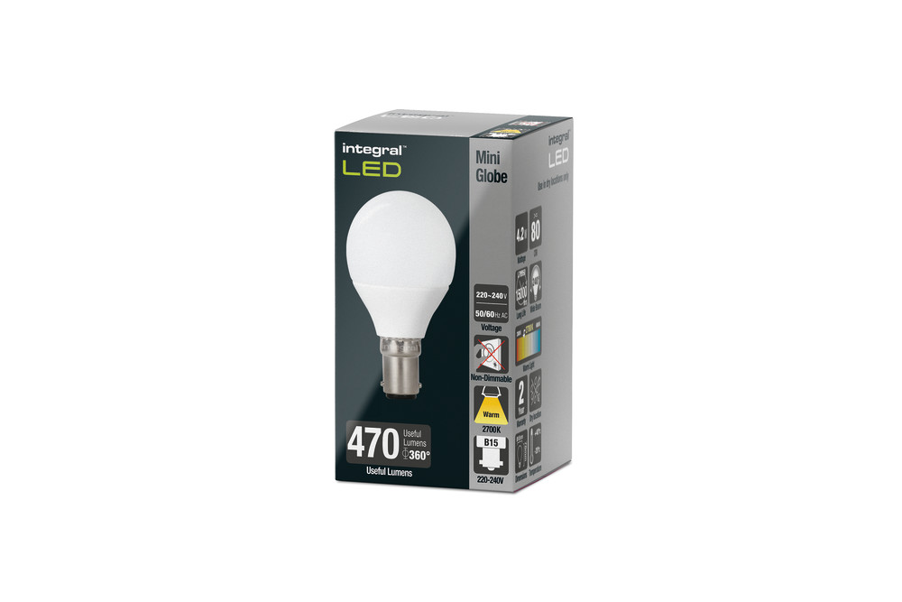 Integral Golf Ball Bulb B15 470Lm 4.2W 2700K Non-Dimm 240 Beam Frosted