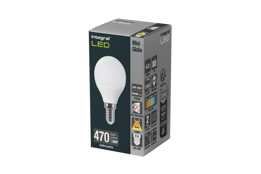Integral Golf Ball Bulb E14 470Lm 4.2W 2700K Non-Dimm 240 Beam Frosted