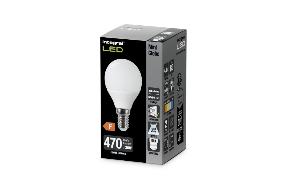 Integral Golf Ball Bulb E14 470Lm 4.9W 4000K Dimmable 240 Beam Frosted