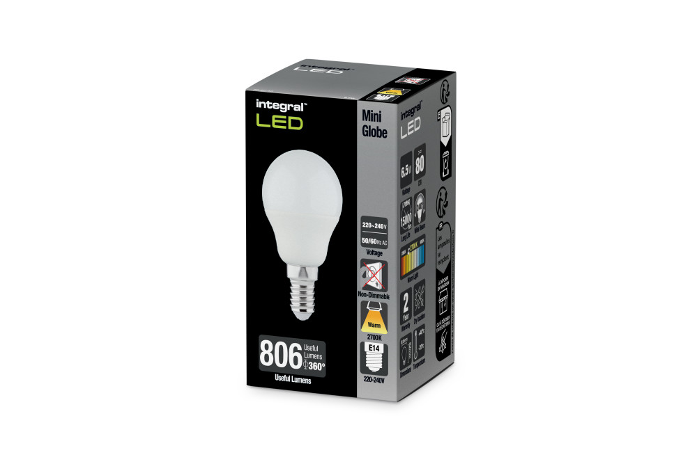 Integral Golf Ball Bulb E14 806Lm 7.3W 2700K Non-Dimm 220 Beam Frosted