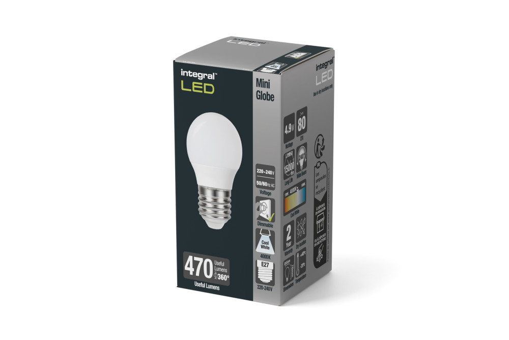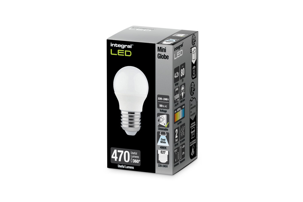Integral Golf Ball Bulb E27 470Lm 4.9W 4000K Dimmable 240 Beam Frosted