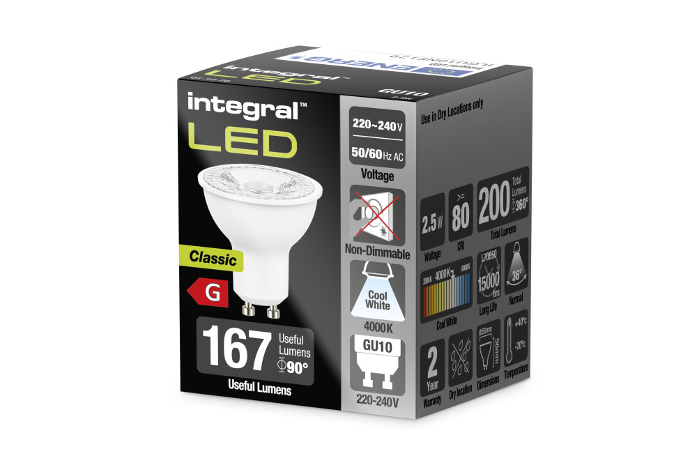Integral Gu10 Bulb 200Lm 2.5W 4000K Non-Dimm 36 Beam