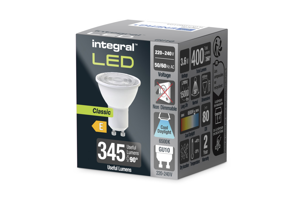 Integral Gu10 Bulb 400Lm 3.6W 6500K Non-Dimm 36 Beam