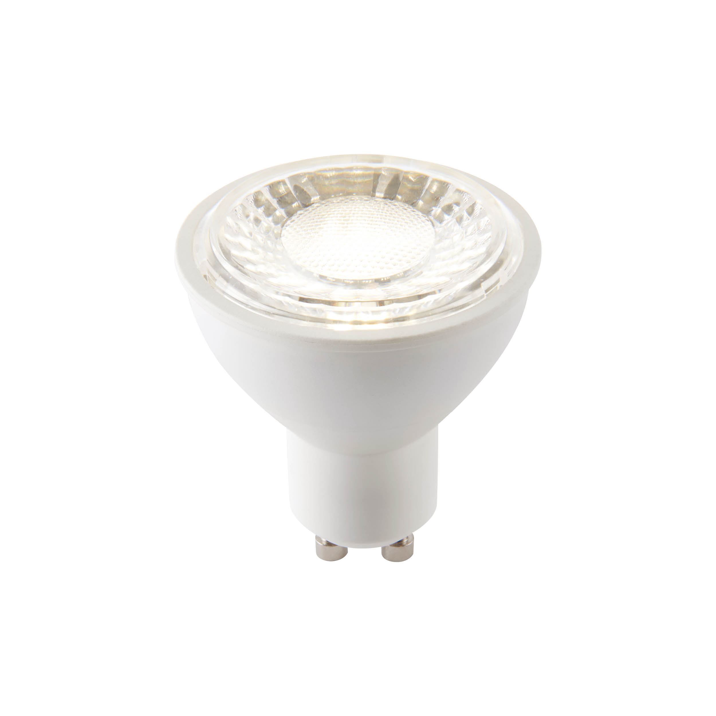 A bright, 7W SMD GU10 lamp in cool white, incorporating the latest LED technology. This ensures the lamp can be used safely within enclosed heads, such as outdoor, bathroom and fire recessed cans, with no reduction in performance or lifetime. With a beam angle of 60?, this lamp is equivalent to a 75W halogen. Other options available in this range