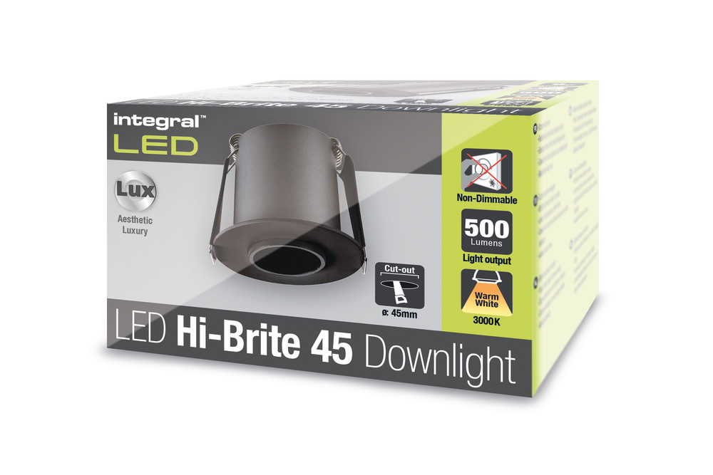 Integral Hi-Brite Downlight 45Mm Cutout 9W 500Lm 58Lm/W 3000K 30 Beam Non-Dimm Black