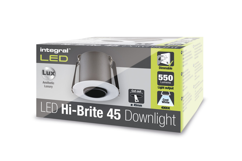 Integral Hi-Brite Downlight 45Mm Cutout 9W 550Lm 63Lm/W 4000K 30 Beam Dimmable White