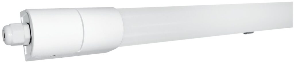 Slim profile batten available in 600mm, 1200mm and 1800mm, offering even light distribution, single end cable entry through an IP gland with push fit terminals for easy installation supplied with ceiling wall clips