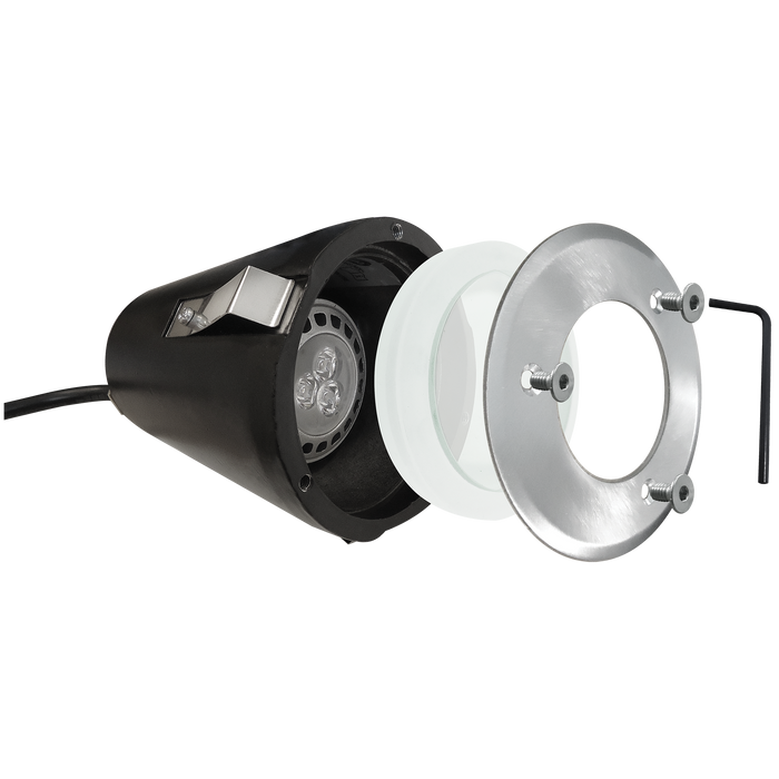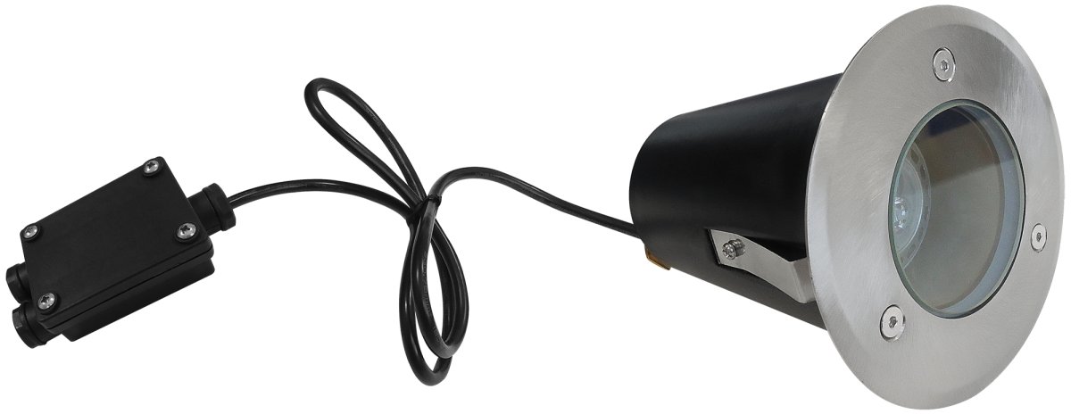 GU10 deck light with stainless steel bezel with pre wired 1m rubber cable for easy loop out facility from the 3 way terminal box. An ideal solution for uplighting within decking to highlight border areas, GU10 lamp holder allows easy maintenance for lamp replacement