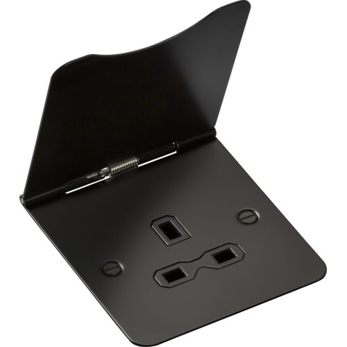 Knightsbridge 13A 1G Unswitched Floor Socket Matt Black with Black Insert