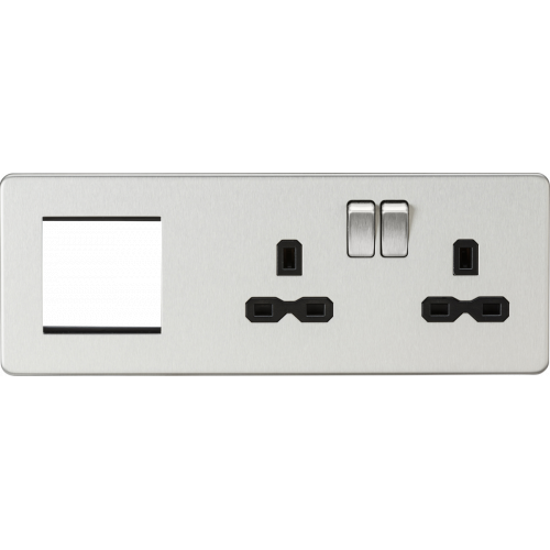 Essential for any major upgrade, renovation or new build. The Screwless Socket and 2G Modular Combination Plate allows for a power and bespoke signal distribution solution to be combined in one area.Compatible with our extensive range of modular inserts this plate can be configured to suit your requirements, be it Satellite TV, DAB, Telecoms, Networking or even USB Charging.Product code explanation: “L” designates 2G Socket on the left and 2G modular on the right “R” designates 2G Socket on the right and 2G modular on the leftFeatures- 230V 13A- Double Pole Switches- 1 x 2G Double Sockets with Twin Earth- Space for up to 2 x Euro module inserts (25 x 50mm)