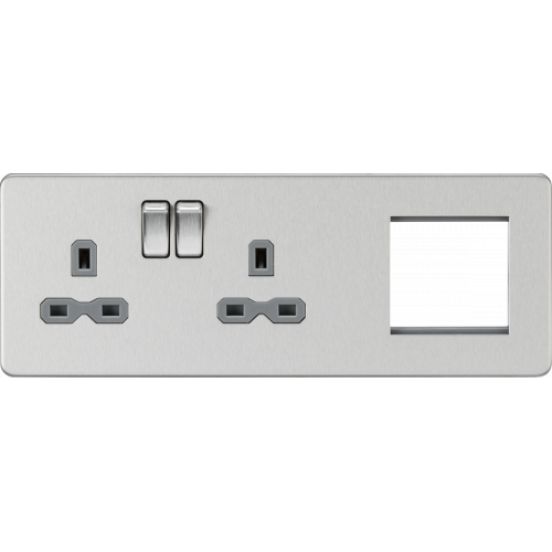 Knightsbridge 13A 2G DP Socket + 2G Mod Plate Brushed Chrome with Grey Insert