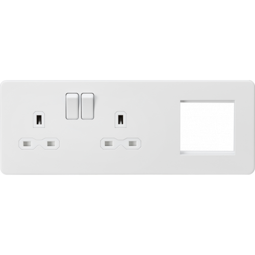 Knightsbridge 13A 2G DP Socket + 2G Mod Plate Matt White with White Insert