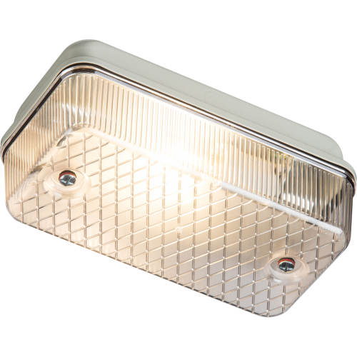 Knightsbridge 230V IP65 100W max (ES) E27 Bulkhead with Clear Prismatic Diffuser and White Aluminium Base