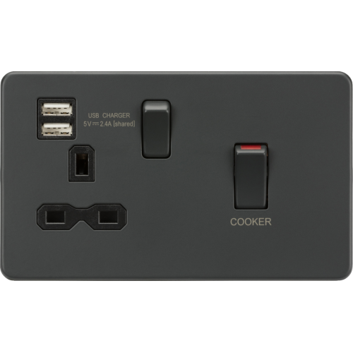 Knightsbridge Anthracite 45A DP Switch & 13A Socket with Dual USB A+A (5V DC 2.4A shared) with Insert