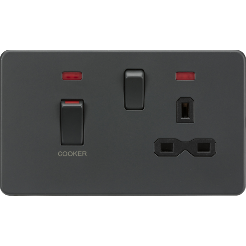 Knightsbridge Anthracite 45A DP Switch & 13A Socket with Neons