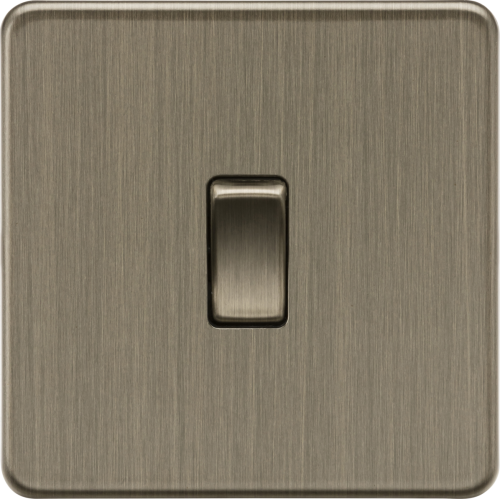Perfect finishing touch to any modern home, flawless Screwless low profile metal design with matching metal rocker.10AX 2-way switches are generally used when there are two entrances to a room, where there is a switch positioned at either entrance requiring joint control of the lighting.- 10AX rated- Screwless low profile design with built in gasket- Certified to EN 60669-1- Minimum mounting box 16mm