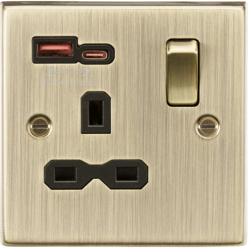 Knightsbridge Antique Brass 13A 1G SP Switched Socket with Dual USB A+C 12V DC 1.5A [Max. 18W] with Insert