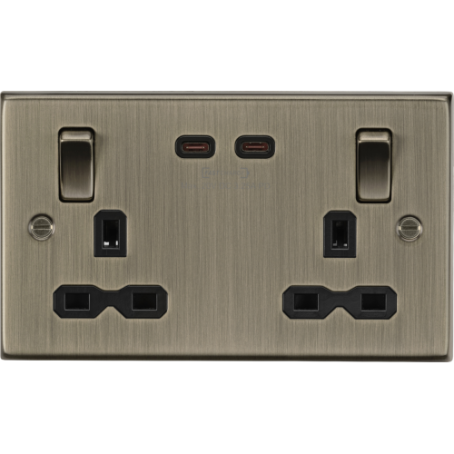 Knightsbridge Antique Brass 13A 2G DP Switched Socket with Dual USB-C [65W DUAL FASTCHARGE]