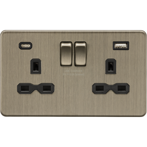 Knightsbridge Antique Brass 13A 2G SP Switched Socket with dual USB C+A 5V DC 4.0A [shared]