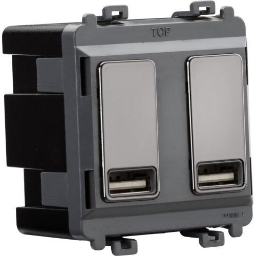 Knightsbridge Black Nickel Dual USB charger module (2 x grid positions) 5V 2.4A (shared)