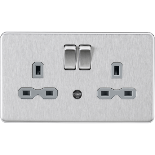 Knightsbridge Brushed Chrome 13A 2G DP Switched Socket with Photocell Nightlight Function with Insert