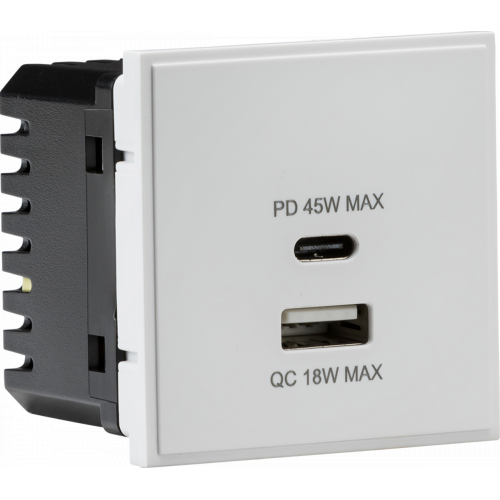 Knightsbridge Dual USB A+C Charger Module (20V DC 2.25A Max. 45W) 50x50mm – White